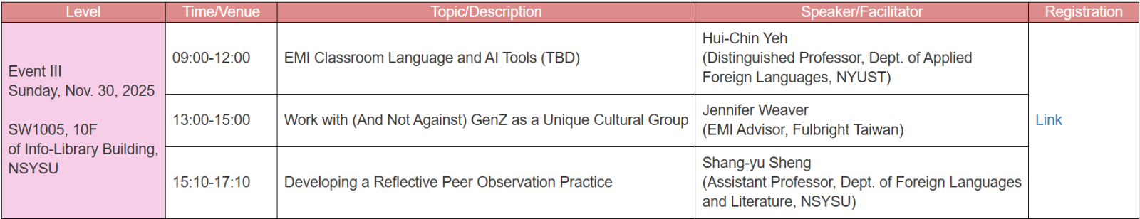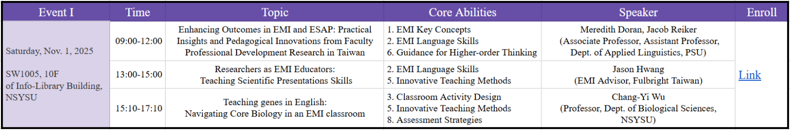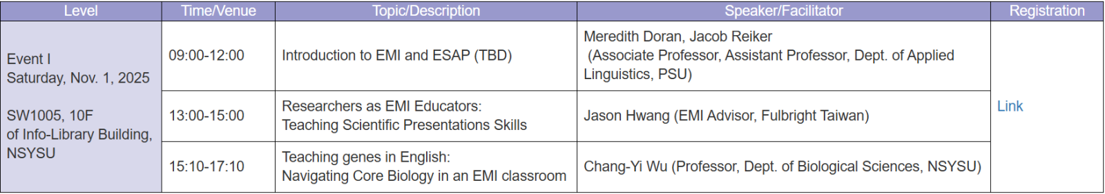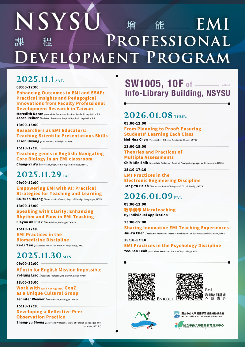 114-1 EMI教師培訓計畫—培訓課程開放報名!