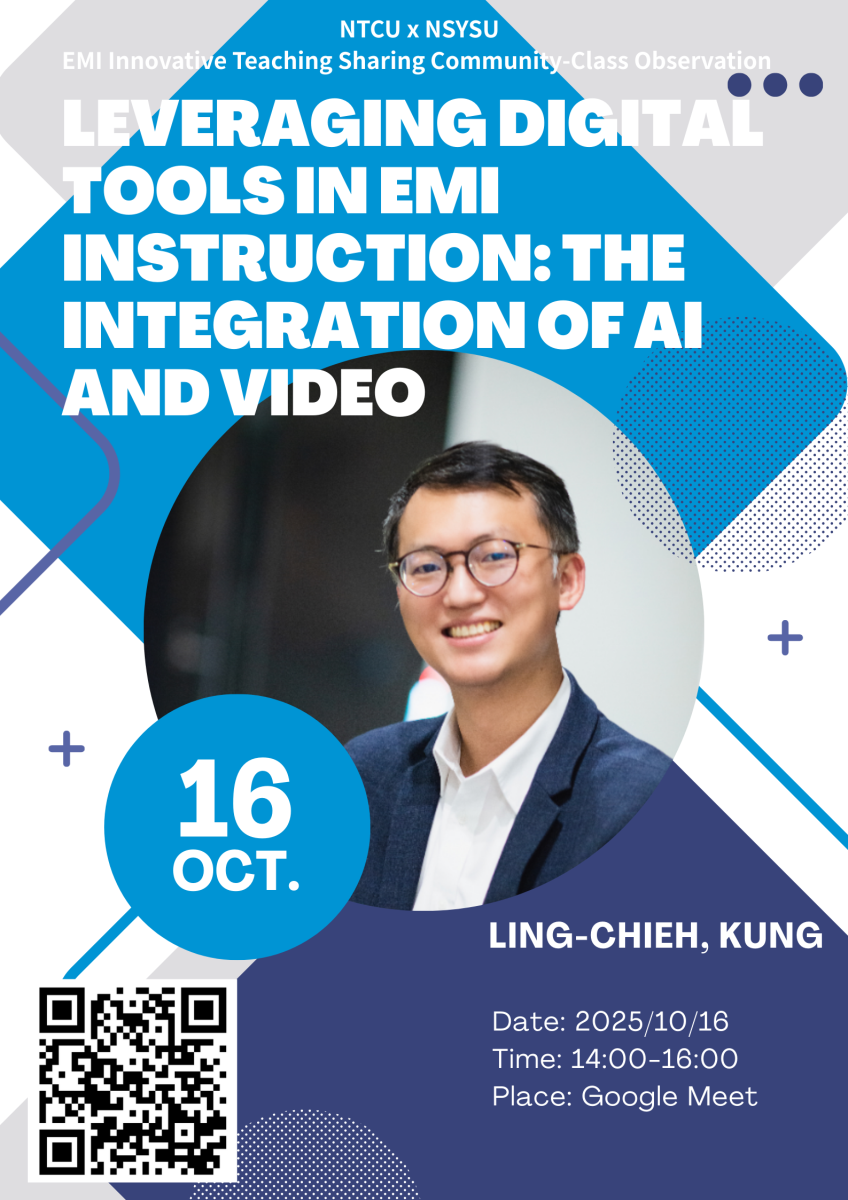 114.10.16 (四) 中教大x中山雙語跨校教師社群活動: 數位工具在EMI教學中的應用:AI與影片的結合