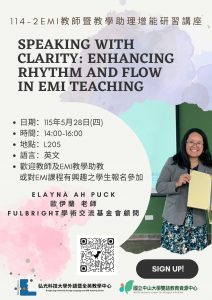 主題:Speaking with Clarity: Enhancing Rhythm and Flow in EMI Teaching